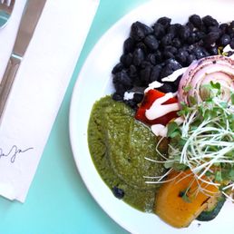 4.5: Really enjoyable vegan Mexican food in a nice setting and good service There's a nice ambiance to this place, light and airy. The menu has some appetizers, specialty dishes, tacos and desserts. Thumbs up to the chimichanga and huevos burritos, both had a little kick and they can appeal to both vegans and nonvegans alike. In perusing the menu i wished there were a few more novel options to choose from (such as two types of quesadillas), but we were happy with the freshness, plating and taste. The portions arent huge so we felt satiated but not stuffed (we were hungry because of a long walk in the city). If you like alcohol they seem to have a decent selection there, too. Love the tap water with mint. We were there on a Sunday around 4 pm so there was no wait and plenty of seating. The service was also very nice and attentive enough. I really like it when they don't hover over you when you're paying. Would love to return!